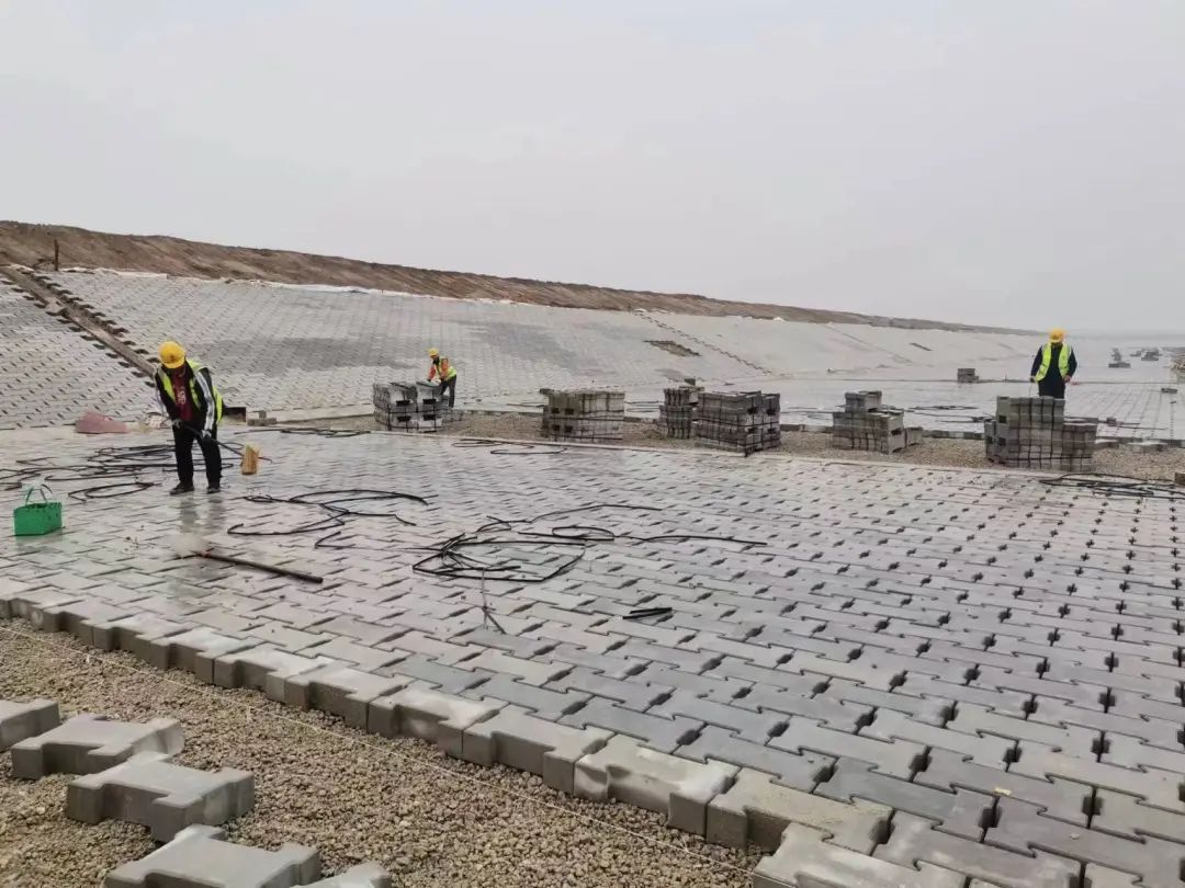 (图为官路水库项目墨水河河道改道护砌工程)