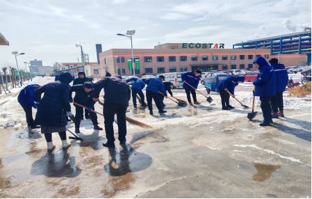 双星集团团委组织动员100余名团员青年,对全球模式与市场创新中心、研发中心及董家口基地进行清雪除冰,大家热情高涨,互相协作,手持扫雪铲,撒布除冰盐,共同清除公司周边道路和停车场的积雪与冰层,确保道路畅通,保障了员工和行人的出行安全。