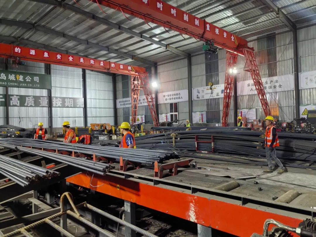 通过20余部摄像头、智慧安全帽等终端设备与“智慧工地”系统平台实时联动,远程实时同步现场作业情况和人员活动状态,将工地可视化、管理实名化、监测实时化、应用智能化变为现实,项目安全和质量标准化管理效果显著;建立智能钢筋加工区,运用智能化加工设备,实现钢筋“机械化、工厂化、专业化、信息化、精细化”加工,有效保障钢筋加工精度及工期;同时,强化原材料源头管理,加强班组建设,由项目管理人员全程监督,确保高品质混凝土实施效果。