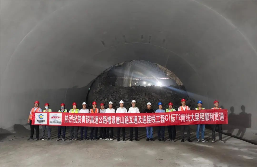 唐山路隧道是青银高速公路唐山路互通及连接线工程的控制性节点工程,全长约1.5公里,主线双洞8车道设计,具有“多断面、小净距、超大跨复杂”的特点,是亚洲最大跨度市政交通隧道工程。本次贯通的出口段至T2横通道右线为唐山路隧道第二大跨度断面,断面宽度31.48m,高度17.588m,面积435.48㎡。为有效克服大跨度施工、地质条件复杂、作业空间有限以及多工种交叉作业等施工难题,自阶段性施工开始以来,交发集团联合各参建单位强化安全管理、严控工序组织,通过智能化施工管理系统全方位、全时段实现对施工进度、质量和安全的有效监控与管理,合理统筹人、材、机等资源,高质高效完成阶段性导洞贯通任务。
