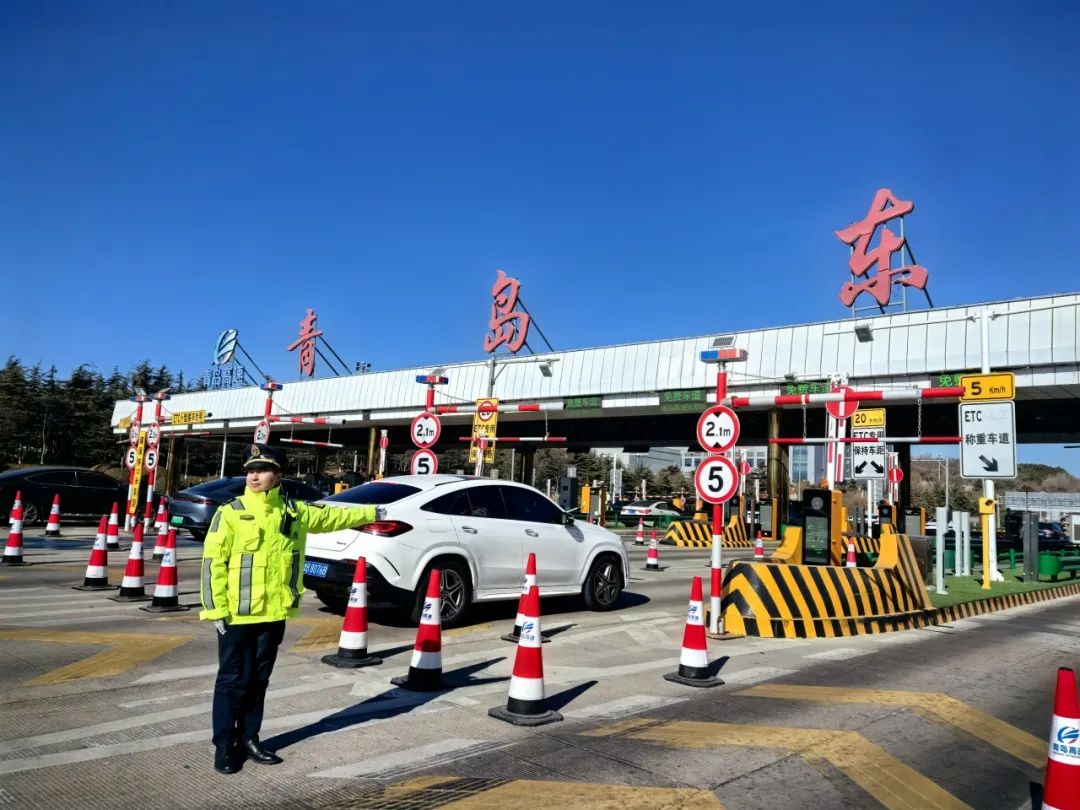 (图为青岛东收费站春节期间保畅现场)