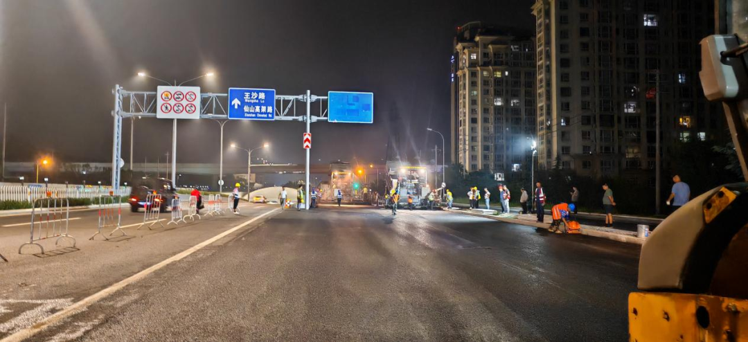 施工过程中,在市市政公用中心指导下,交发集团会同各参建单位优化建设方案,克服管线多、工序交错、地质复杂等困难,采取“通盘布局、见缝插针”的轮班模式,施工单位投入百余名人员,四十余台设备,24小时不间断作业。最终,唐山路地面道路、月龙峰路、5号线连接线比原计划提前15天通车,环校交通循环体系完成,有效缓解了开学后家长接送车辆的停泊压力。