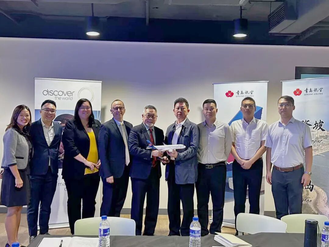 出访期间,青岛航空还拜访了马来西亚国家旅游局、吉隆坡中国文化中心、马来西亚旅游总会、马来西亚华人旅游业公会等当地主管部门和主要文旅机构,就后续国际航线战略布局、市场合作、中转通道建设及品牌推广等,进行深入交流。