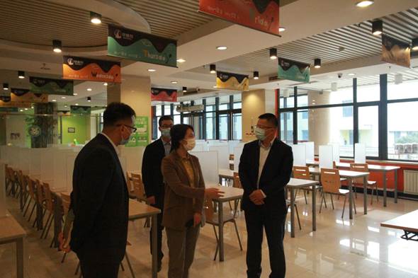 张丹丹一行查看了学校防疫物资储备及各重点区域的防控情况,听取了学校疫情防控领导小组关于开展防疫的工作汇报,详细了解了学校防控工作机制,查看了疫情防控工作档案并进行了现场指导。