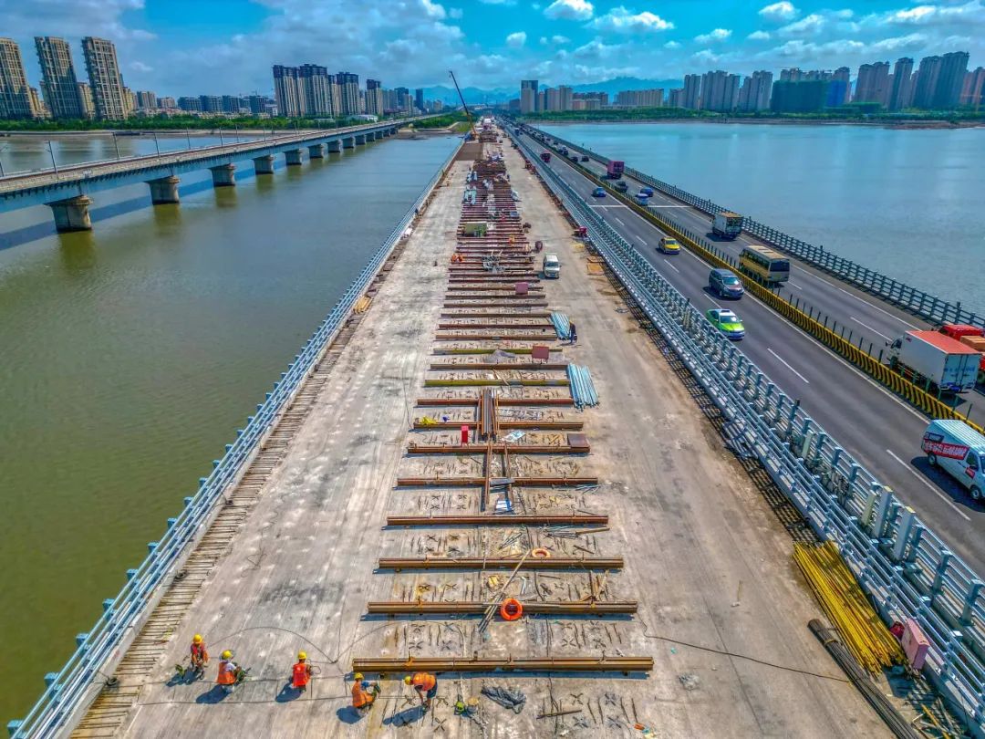 施工过程中,交发集团充分发挥驻场建设办的协调作用,全程保障建设条件,一次性投入桥梁作业工人800余人及全部作业平台,仅用时36天完成全桥1041道横肋和湿接缝施工。