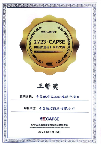 跻身航司案例TOP10!青岛航空在首届民航质量提升实践大赛中获奖