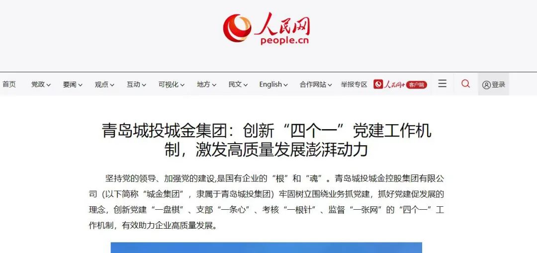 【人民网】青岛乐鱼在线注册_乐鱼(中国)城金集团:创新“四个一”党建工作机制,激发高质量发展澎湃动力