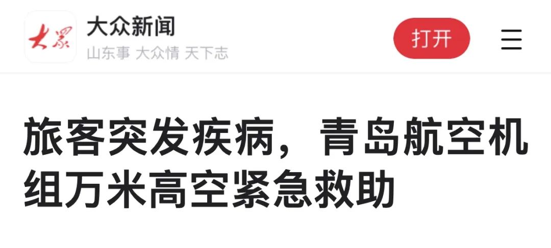 【大众网】旅客突发疾病,青岛航空机组万米高空紧急救助