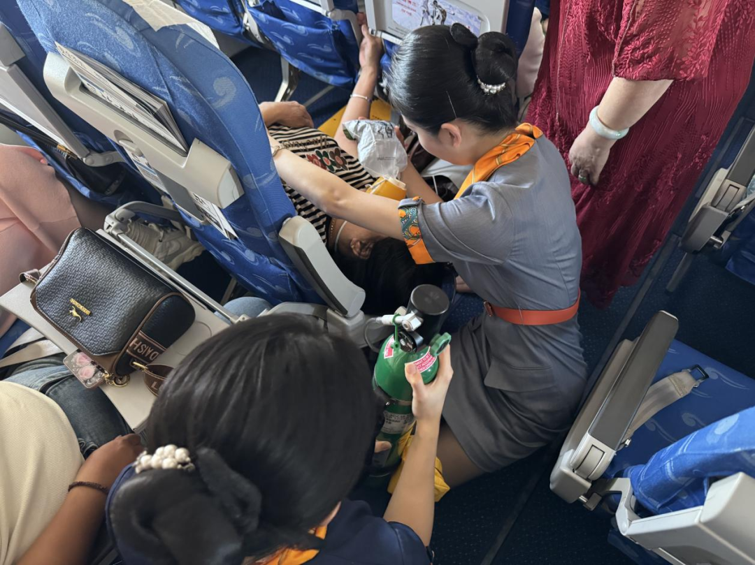 9月9日,在青岛航空QW6062贵阳至扬州的航班上,一名乘客突发疾病,情况危急。青岛航空乘务组及时发现并启动紧急医疗救护程序,通过及时有效救治,旅客病情逐渐稳定,最终平安抵达目的地。