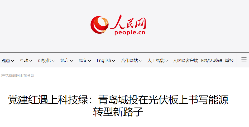 人民网点赞:青岛乐鱼在线注册_乐鱼(中国)在光伏板上书写能源转型新路子