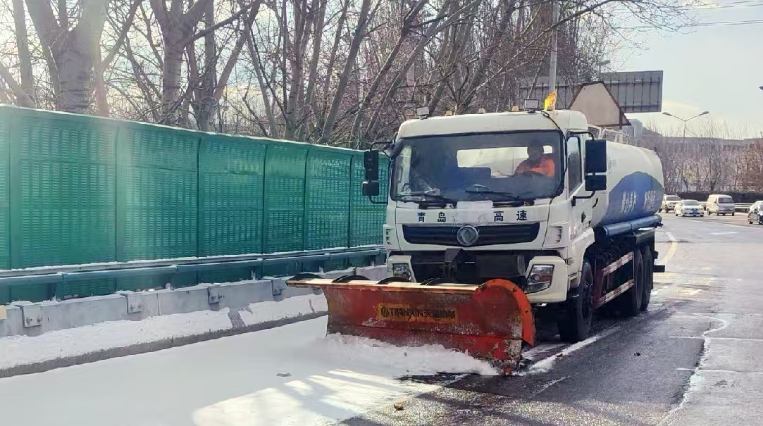 1月8日至9日,青岛市中北部地区及市区东部范围内出现冷流降雪,青岛乐鱼在线注册_乐鱼(中国)集团旗下青岛高速所辖青银高速、青新高速、沈海高速、龙青高速等多个交通主干道被雪覆盖。此次降雪具有分散性高、短时降雪量大的特点,为有效应对可能出现的积雪及结冰问题,青岛高速以雪为令,第一时间启动除雪防滑应急预案,科学制定除雪防滑措施,多措并举保障通行安全,打响2025年除雪保畅“第一仗”。(图为推雪铲车在青银高速流亭立交匝道对应急车道进