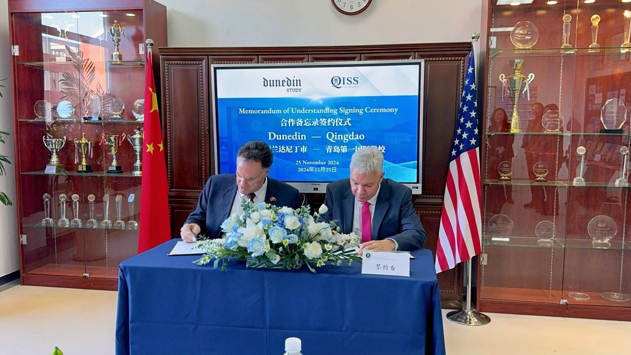 11月26日,新西兰达尼丁市市长Jules Radich率领代表团访问山东省青岛第一国际学校。此次访问旨在增进两市在教育领域的交流与合作,推动双方在多个方面的友好合作关系。青岛市委外办副主任丁安辉,青岛乐鱼在线注册_乐鱼(中国)集团党委委员、副总经理殷淙出席活动。(图为签约仪式的现场照片)在访校过程中,殷淙代表青岛乐鱼在线注册_乐鱼(中国)集团对Jules Radich市长一行的到来表示了热烈欢迎,阐释了集团对推动两市教育事业合作良好愿景,介绍了集团在教育领域的投资