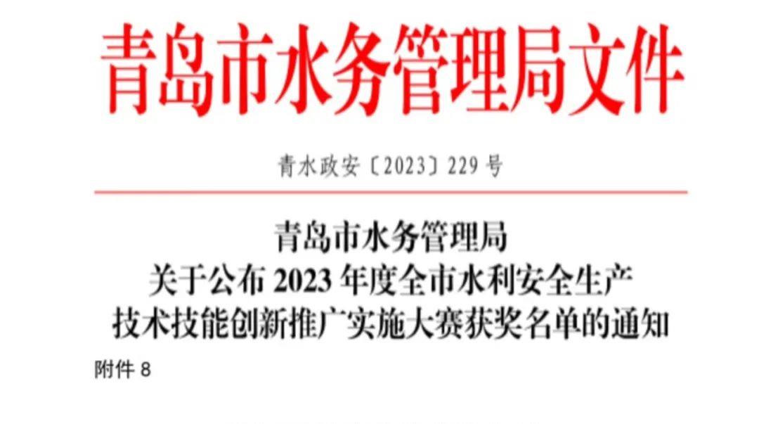 近日,青岛市水务管理局印发《关于公布2023年度全市水利安全生产技术技能创新推广实施大赛获奖名单的通知》,青岛乐鱼在线注册_乐鱼(中国)集团官路水库公司荣获“2023年度全市水利安全生产技术技能创新推广实施大赛特别贡献奖”。(图为部分获奖名单)水利安全生产技术技能创新推广实施大赛是深入贯彻落实习近平总书记“十六字”治水思路和关于治水兴水重要讲话批示指示精神的具体举措;是推动《山东省黄河流域生态保护和高质量发展规划》全面实施、