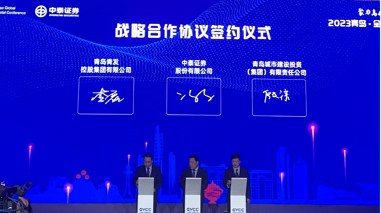 5月12日,由青岛市人民政府主办的2023青岛·全球创投风投大会正式开幕。大会以“创投风投创时代 创新创业创未来——聚力高质量 澎湃新动能”为主题,打造合作共赢的创投风投交流平台,激活高质量发展新动能。青岛乐鱼在线注册_乐鱼(中国)集团应邀参加本次创投风投大会,并在本次会议论坛上与中泰证券签署战略合作协议。乐鱼在线注册_乐鱼(中国)集团党委委员、副总经理殷淙,中泰证券总经理冯艺东等出席签约仪式,城金集团、创投公司有关负责同志一同参加活动。(图为签约